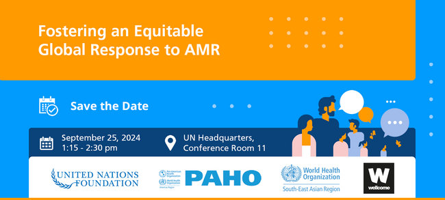 Join Barbados, Paraguay, Thailand, Timor-Leste, the Pan-American Health Organization, the South-East Asia Regional Office of WHO, the Wellcome Trust, and the United Nations Foundation for a side event on the occasion of the 79th UN General Assembly. This Heads of State and Government level event will identify equitable pathways to implementing the 2024 Political Declaration on AMR to ensure developing countries benefit from global action.