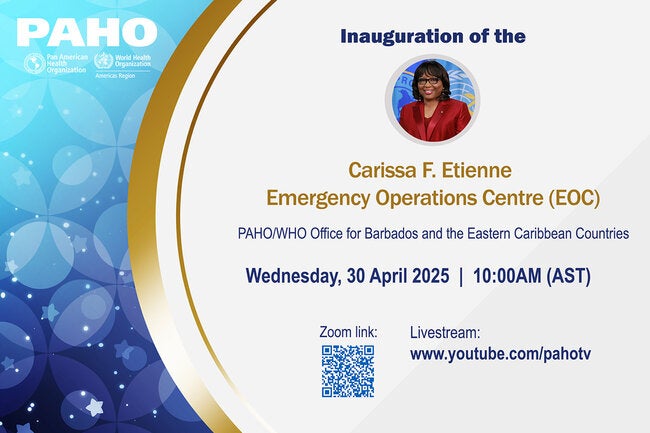 Join us virtually for the inauguration of the Carissa F. Etienne Emergency Operations Centre (EOC), located at the PAHO/WHO Barbados office.