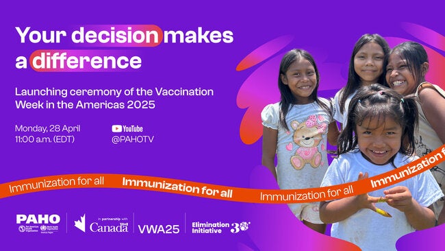 From 26 April to 3 May, 2025, the Pan American Health Organization (PAHO), together with the countries and territories of the Region of the Americas and its partners, will celebrate the 23rd annual Vaccination Week in the Americas (VWA) and the 14th World Immunization Week (WIW) under the call to action: Your decision makes a difference. Immunization for all.
