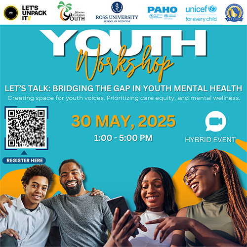 This event brings together youth, mental health advocates, and key partners to prioritize care and equity in youth mental health. In collaboration with: Let’s Unpack It | Healthy Caribbean Coalition | Ross University School of Medicine | PAHO-WHO | UNICEF Eastern Caribbean | Ministry of Health & Wellness, Barbados