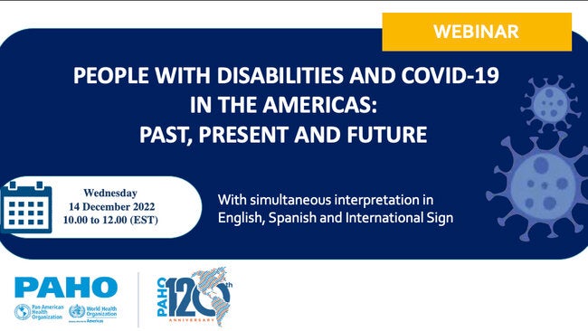 Join us on Wednesday, 14 December, 2022, for the webinar "People with disabilities and COVID-19 in the Americas: past, present and future", the second of a two-part series that will focus on the implications for the Americas of the WHO Global Report on Disability and Health report and how to build a more inclusive and equitable health system for people with disabilities.