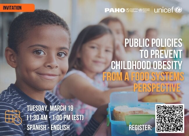 Join us on Tuesday, March 19, 2024 at 11:30 a.m. (Washington D.C. or EST) at the webinar on Public Policies to Prevent Childhood Obesity from a Food Systems Approach, an event that seeks to incorporate the health and nutrition approach as a central axis in the transformation of food systems to prevent overweight and obesity.