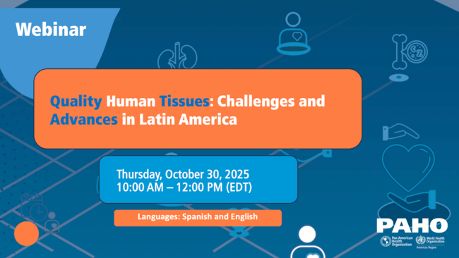 The objective of this webinar is to strengthen good practices and quality in tissue banks across Latin America by promoting the exchange of experiences and regulatory alignment, with the support of PAHO and the participation of regulatory authorities from the region, national donation programs, and tissue bank personnel.