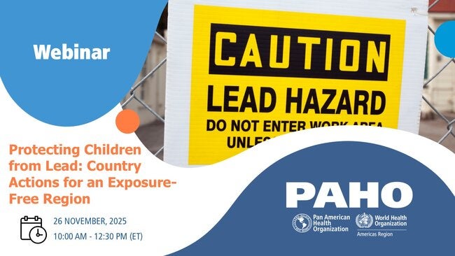 As a follow-up to the activities of the International Week for the Prevention of Lead Poisoning 2025, the Pan American Health Organization (PAHO), together with Vital Strategies and Pure Earth, intend to develop this regional webinar to make visible the advances, challenges and good practices developed by the countries of the Americas in the reduction of childhood exposure to lead.