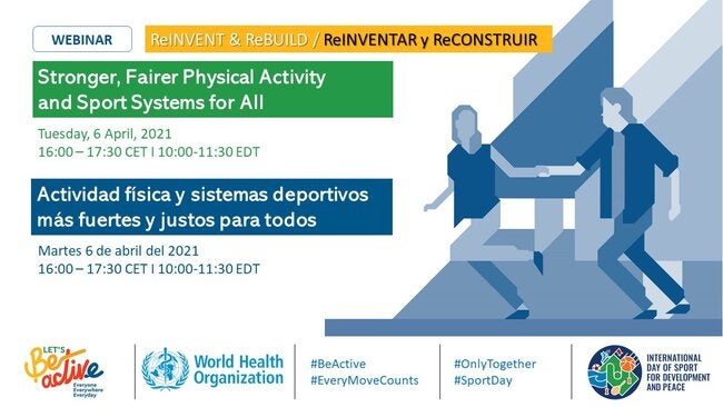 On ocassion of the UN International Day of Sport for Development and Peace (IDSDP), join us in the webinar organized by the World Health Organization on 6 April to discuss how the impacts of COVID-19 have created a need for, and opportunity to reinvent and rebuild stronger, fairer, more inclusive physical activity and sport systems for all.