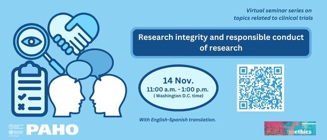 PAHO’s Regional Program on Bioethics and Quality and Regulation of Medicines and Health Technologies Unit invite you to participate in this series of virtual seminars that will address topics related to clinical trials. Many of these topics lie at the intersection of ethical and regulatory aspects.