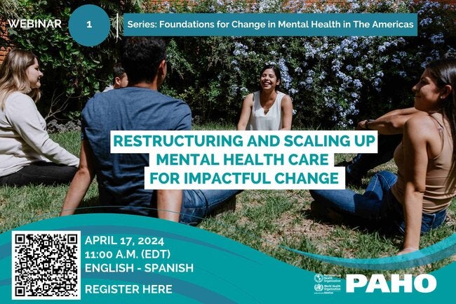 Join us on Wednesday, April 17, 20234, at 11:00 a.m. (EDT) for the webinar Restructuring and Scaling up Mental Health Care for Impactful Change, an event to promote a community-based mental health approach.