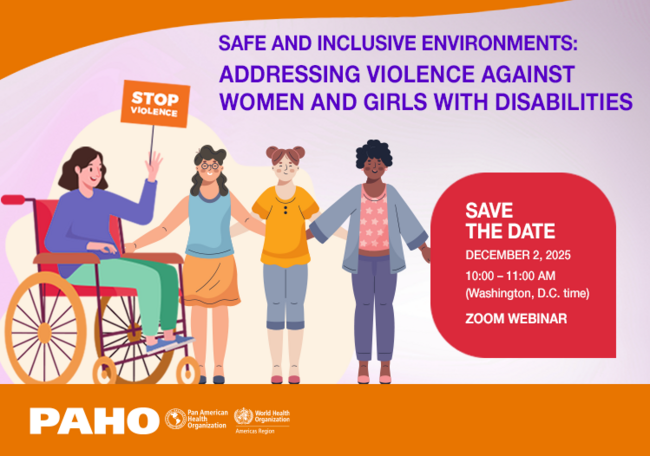 Join us on Tuesday, December 2, at 10:00 a.m. (Washington, D.C. time or EST) for the event "Safe and Inclusive Environments: Addressing Violence Against Women and Girls with Disabilities." During the event, the causes and risk factors contributing to violence against women and girls with disabilities will be analyzed, with the aim of better understanding the dynamics that perpetuate this problem. The barriers that hinder their access to services and support networks will also be addressed, identifying challenges and opportunities to improve the institutional and community response.