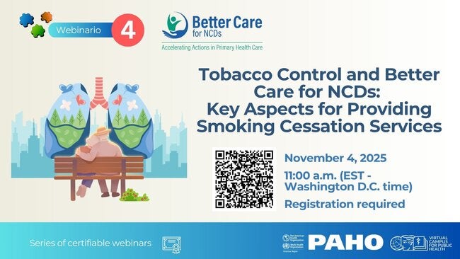 Join us on Tuesday, November 4, 2025, at 11:00 a.m. (EST) for the Tobacco Control and Better Care for NCDs: Key Aspects for Providing Smoking Cessation Services webinar, the fourth webinar in a series of five certifiable webinars from the Better Care for NCDs Initiative.