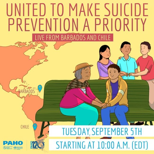 Join us on Tuesday, September 5th, 2023, from 10:00 a.m. to 11:30 a.m. (EDT) for our live regional event, United to make suicide prevention a priority. The live conversation aims to give a platform to two different experiences from Barbados and Chile with live audiences in each country and we want you to be part of it by joining online. The event is part of the activities for the observation of World Suicide Prevention Day -September 10- and will be held in Spanish, English, and Portuguese, and simultaneous translation will be available.