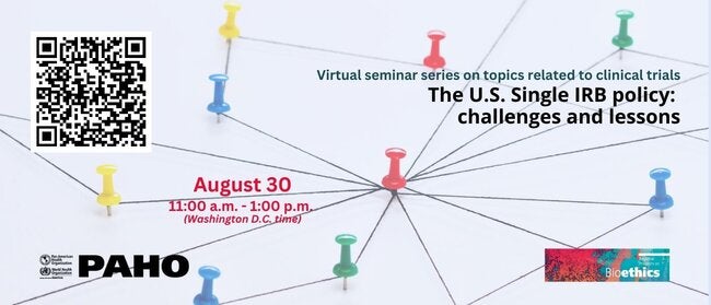PAHO’s Regional Program on Bioethics and Quality and Regulation of Medicines and Health Technologies Unit invite you to participate in this series of virtual seminars that will address topics related to clinical trials. Many of these topics lie at the intersection of ethical and regulatory aspects.