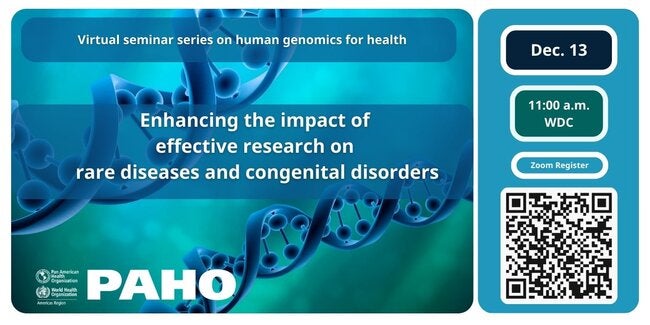 The Science and Knowledge for Impact Unit (SK/EIH) and the Latin American Center for Perinatology, Women's and Reproductive Health (CLP/WR) of PAHO invite you to participate in this series of virtual seminars on topics related to human genomics for health.
