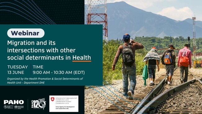 The webinar is entitled Migration and its intersections with other social determinants in health, and will take place on Tuesday, June 13, 2023, from 9:00 am to 10:30 am (ET).