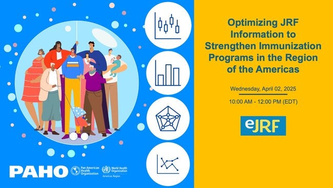 Next Wednesday, April 02 from 10:00 a.m. to 12:00 p.m. (EDT) we will meet in the virtual seminar "Optimizing JRF Information to Strengthen Immunization Programs in the Region of the Americas", organized by the PAHO Special Program on Comprehensive Immunization (CIM).