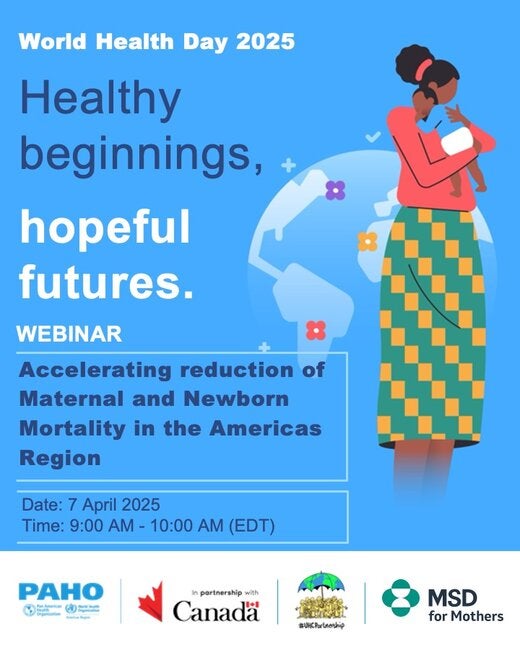 World Health Day, celebrated on 7 April 2025, will kick off a year-long campaign on maternal and newborn health. The campaign, titled Healthy beginnings, hopeful futures, will urge governments and the health community to ramp up efforts to end preventable maternal and newborn deaths, and to prioritize women’s longer-term health and well-being. Join the Pan American Health Organization to celebrate the World Health Day with the webinar "Accelerating reduction of Maternal and Newborn Mortality in the Americas Region".