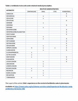 In Chile there are currently 29 antibiotics that must be sold with a prescription that is filed in the pharmacy. This involves filling out pharmaceutical forms on parenteral, oral, ophthalmic, and ophthalmic use (see Table 1). (6) In the first phase, the enforcement procedures could focus on these medicines, as it is possible to objectively compare the number of filed prescriptions with the number of sales, allowing for assessment of compliance with the conditions of sale for antibiotics. The second phase could expand to other antimicrobials, such as antivirals, antifungals, and antiparasitic drugs.