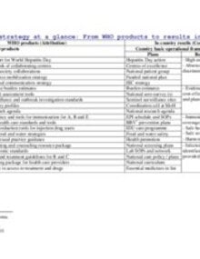 WHO Descriptive Table. Hepatitis Strategy at a Glance: From WHO Products to Results in Countries; 2011 (Sólo inglés)