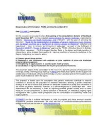 Consultation/ demand of feed back for the projected regional strategy for generic medicines (HSS/MT)