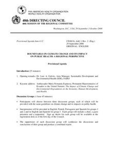 Roundtable on Climate Change and its Impact on Public Health: A Regional Perspective Provisional Age