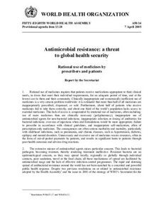A58/14 Antimicrobial resistance: a threat to global health security Rational use of medicines by prescribers and patients; 2005