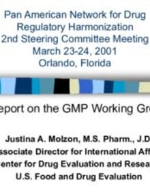 IV Steering Committee Meeting. Annex 1. Madrid, Spain. February 12, 2004. Report of the GMP Working Group Justina A. Molzon