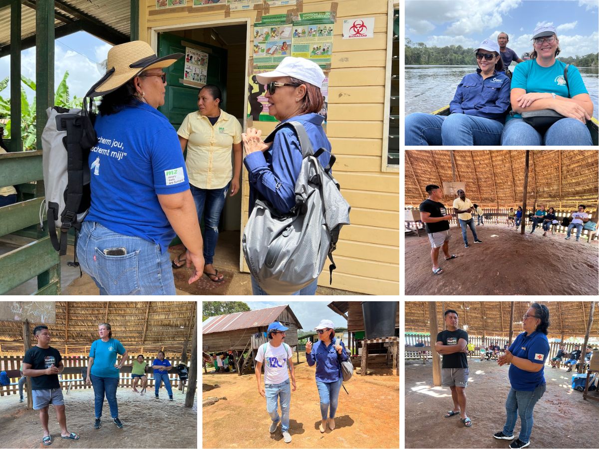 Among the PAHO delegates were Dr. Lilian Reneau-Vernon, PAHO/WHO Representative in Suriname, and Oscar Mesones Lapouble, Technical Officer Public Health Emergencies & Tropical and Vector-borne Diseases. Dr. Helène Hiwat, Coordinator of the Malaria Program also joined the Medical Mission delegation led by Maureen Wijngaarde-van Dijk, Deputy Director of the Medical Mission. The site visit aimed to promote awareness and provide information on malaria prevention measures, proactive case detection, and treatment, as well as the distribution of bed nets to reduce the risk of infection.