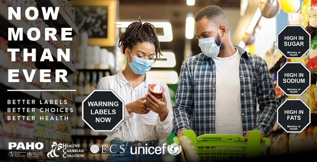 Titled “Now More Than Ever: Better Labels, Better Choices, Better Health", the campaign seeks to both raise awareness of children’s right to nutritious food and to mobilize public and policymaker support for adopting octagonal warning labels on the front of packaged products to facilitate healthier food decisions. Running until 17 April 2021, it will be rolled out across social media, digital media, and radio platforms in Caribbean Community (CARICOM) Member States.
