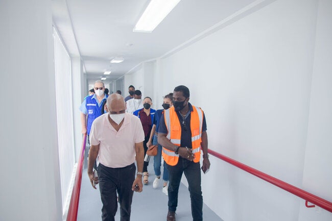 GEORGETOWN, GUYANA- 13 March 2021- The Ministry of Health and PAHO Guyana representatives conducted a tour of the Leonora Cottage Hospital to assess retrofitting works done under the Smart Hospitals Project which commenced in November of 2020. The Smart Hospital initiative builds on the Safe Hospital Initiative and focuses on improving hospitals resilience, strengthening structural and operational aspects and providing green technologies to ensure the facility remains functional during emergencies and disasters.
