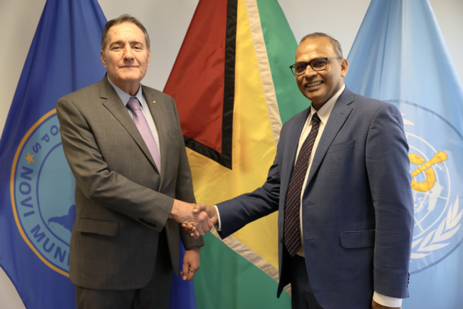 Guyana Minister of Health Dr. Frank Anthony met with PAHO Director Dr. Jarbas Barbosa at PAHO Head Quarters in Washington D.C. We congratulate Guyana's actions to update health legislation including for mental health, and to invest in hospitals, primary care, telemedicine and surveillance.