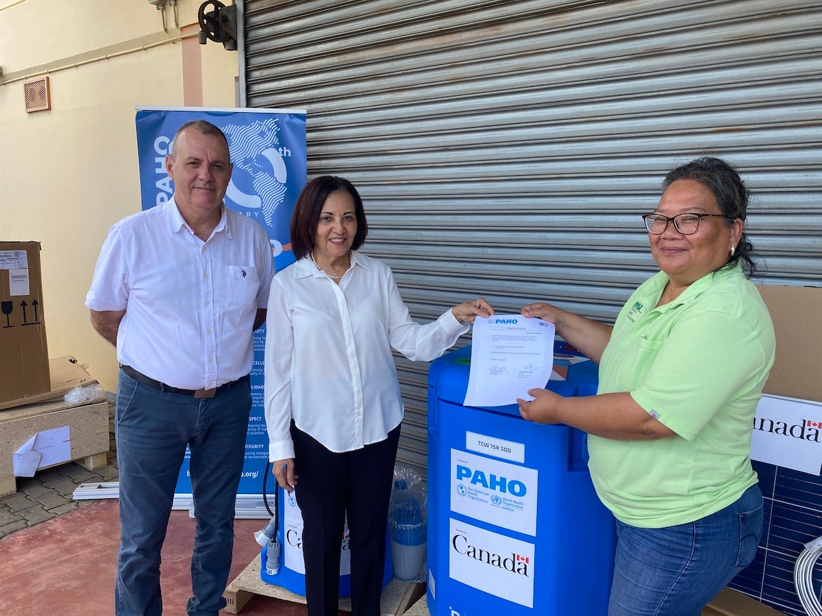 Suriname, June 13, 2023 (PAHO/WHO) – The Pan American Health Organization (PAHO) is pleased to announce the successful handover of a generous donation to the Medical Mission in Suriname. This donation, made possible through funds provided by the Canadian Government, aimed to bolster the access and provision of COVID-19 vaccines to communities in the interior of Suriname.