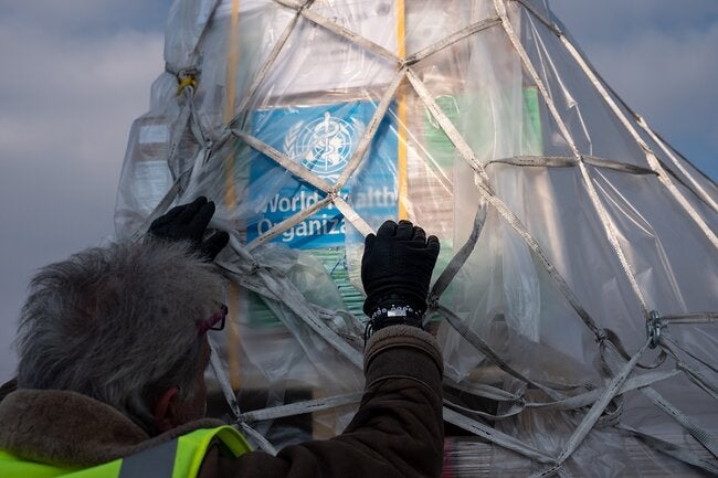 WHO is in constant dialogue with Ukrainian authorities. All supplies are distributed in close coordination with the Ministry of Health, based on WHO critical needs assessments, public health risk, service assessments and logistic capacity. The coming days and weeks will see a constant flow of medical supplies, as part of an effort to ensure people’s access to essential drugs and medical care.