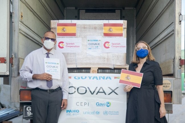 GEORGETOWN, GUYANA, 14 January 2022 [PAHO] — Guyana today received 28,800 doses of the Janssen Ad26COV2.S vaccine as part of the dose-sharing mechanism. under a project funded by Spain, through the COVAX Mechanism Facility, a partnership between the Coalition for Epidemic Preparedness Innovations (CEPI), Gavi, the Vaccine Alliance, the Pan American Health Organization/World Health Organization (PAHO/WHO), and the United Nations Children’s Fund (UNICEF) to ensure the equitable distribution of vaccines against COVID-19 globally.