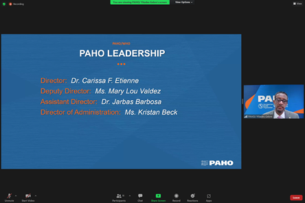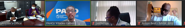 Bridgetown, Barbados, 8 February 2022 (PAHO) - The Pan American Health Organization (PAHO), Office for Barbados and the Eastern Caribbean Countries held a virtual courtesy call and orientation for the newly appointed Ministers of Health in Barbados on the Organization, structure, functions, and its technical cooperation.