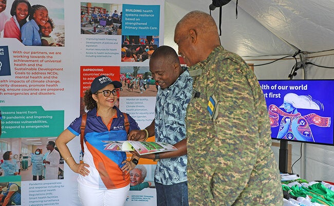 Bridgetown, Barbados, 15 April 2024 (PAHO) - Free health checks, health information and sporting activities were provided to the public when the Pan American Health Organization (PAHO), the Ministry of Health and Wellness and other partners hosted a community outreach event in celebration of World Health Day which is celebrated annually on April 7th.