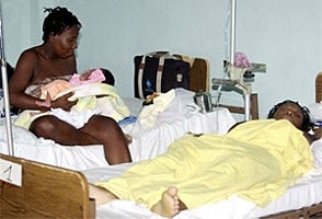 A woman holds her baby at Port-au-Prince's Isaie Jeanty hospital where women can give birth for free. (Photo AFP)