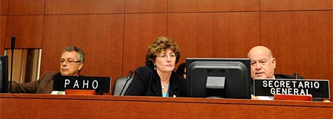 From the left: Ricardo Mario Domínguez, (OAS), PAHO Director Mirta Roses Periago, and José Miguel Insulza, OAS' Secretary General. (Photo by Juan Manuel Herrera - OAS)