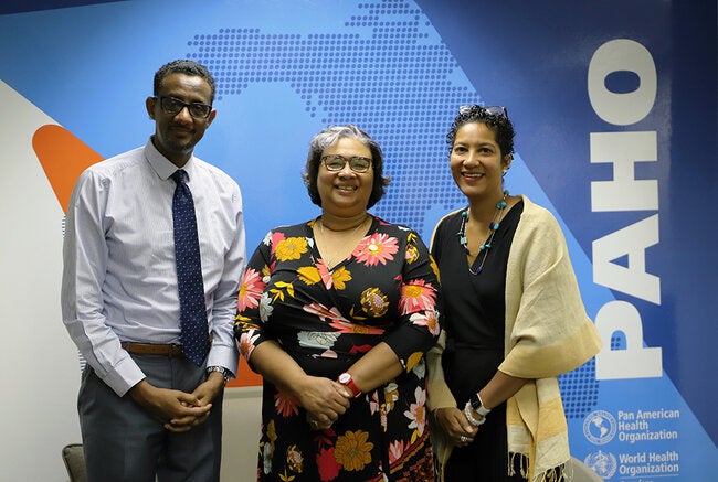 On Wednesday 19 February 2020, Executive Director of the Caribbean Public Health Agency (CARPHA), Dr Joy St John, made a courtesy visit to the Office of the Pan American Health Organization/World Health Organization (PAHO/WHO) Representation to Barbados and Eastern Caribbean Countries (PWR-ECC) and met with the newly appointed PWR-ECC, Dr Yitades Gebre.