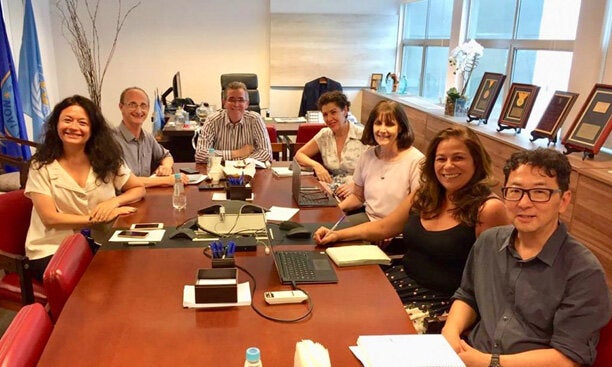 Mr. Pigatto met with Dr Diego González, director of Bireme; Silvia de Valentin, Manager of Administration and Planning; Verônica Abdala, Information Sources manager; Rosemeire Rocha Pinto, librarian in the User Services area; Marcos Mori, representing Renato Murasaki, Information Technology Manager; and Dr. Lilian Calò, coordinator of Scientific and Institutional Communication.