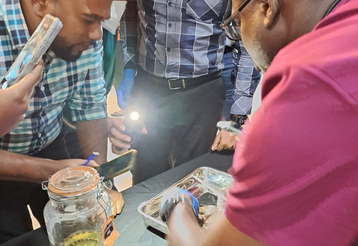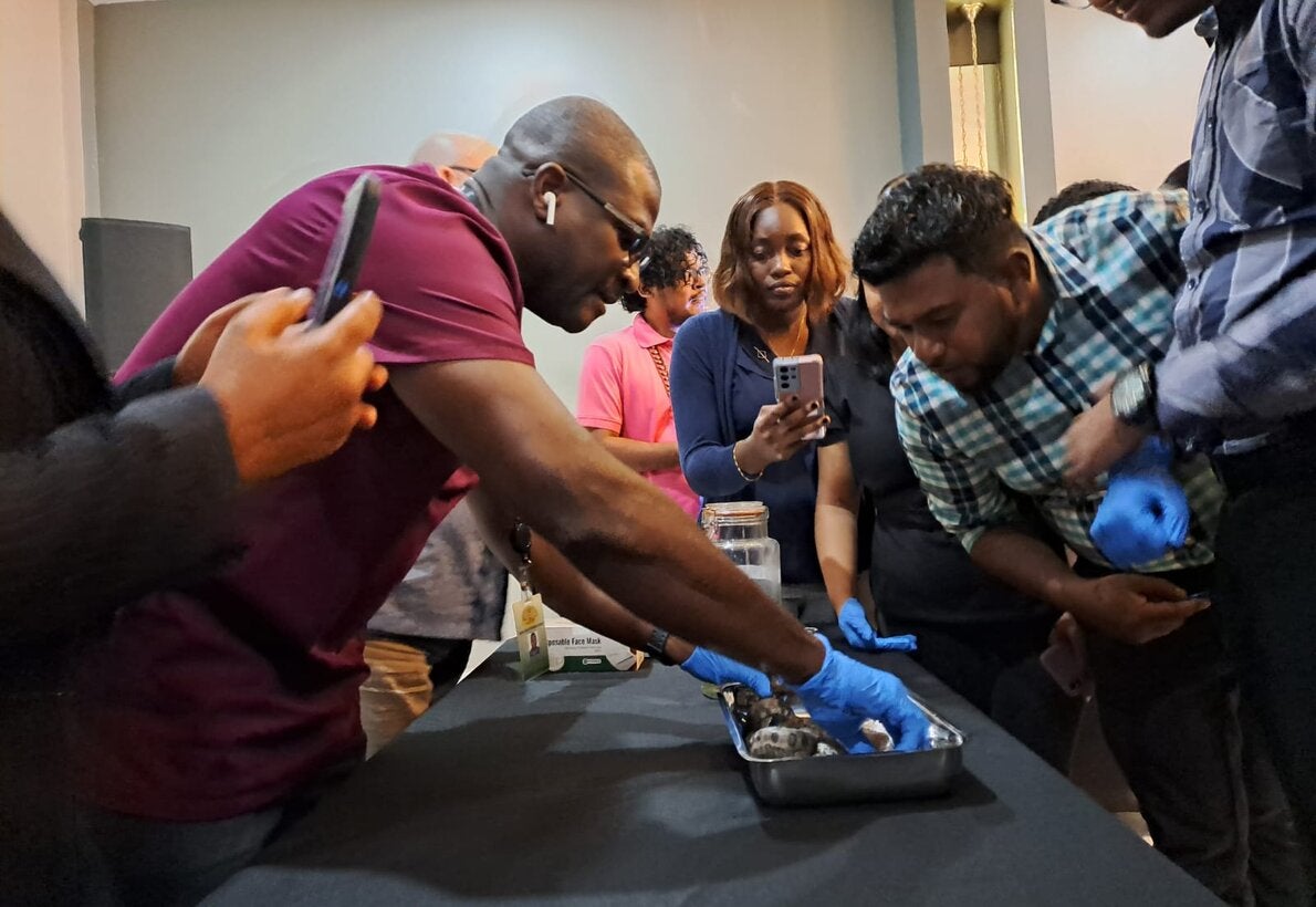 Participants from the Guyana Livestock and Development Authority showcased two snake specimens, allowing participants to conduct examinations to a better understanding of the local species.