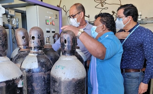 Across the globe, the response to the COVID-19 pandemic has accelerated the demand for stable supplies of medical oxygen, which is critical for the treatment of most hospitalized COVID-19 patients. Anticipating a surge of COVID-19 cases in Guyana, the Ministry of Health requested technical support from PAHO to assess the oxygen supply infrastructure in the health system, to determine measures to scale up distribution of oxygen in the country. PAHO deployed a team within days to assess current medical oxygen supply capacities and proposed recommendations to improve epidemic response.