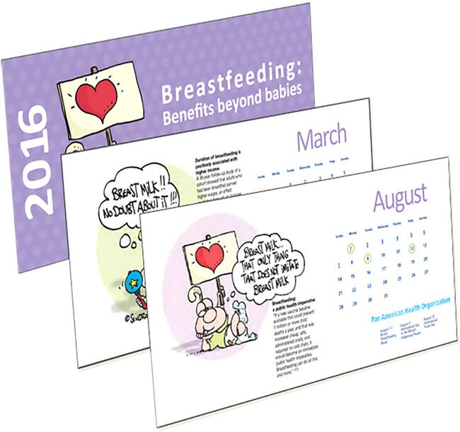 "Breastfeeding benefits mothers and children regardless of birthplace or the level of development of a country. But in the Americas, breastfeeding rates are not improving, and in some countries, they're declining, said Chessa Lutter, PAHO senior advisor on nutrition and food. "We hope the scientific evidence presented in the calendar on the benefits of breast milk for children, mothers, the environment and the economy will help to promote breastfeeding as well as a healthier, more equitable society."