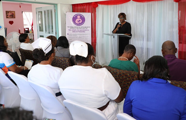 She congratulated the country for achieving certification as a baby-friendly hospital and assured of continuous cooperation from PAHO to maintain this certification. “Having been certified as baby friendly signifies the hard work and dedication of the Ministry’s committed staff. With the support of PAHO, St Kitts and Nevis have in place the breastfeeding policy, conducted staff capacity building, and the 10 steps for successful breastfeeding.”