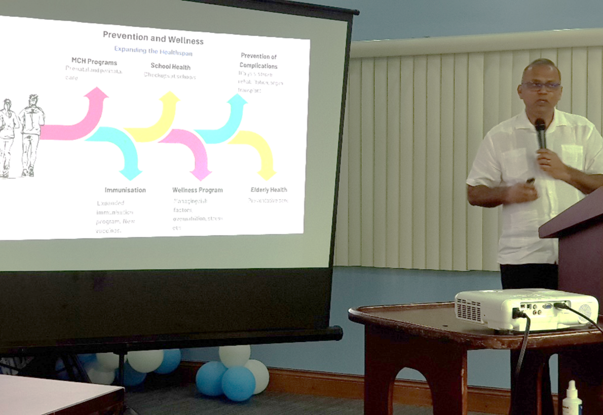 The workshop opened with a “Vision Statement” from Hon. Dr. Frank Anthony, Minister of Health, in which he presented his plans for the future of the health system in Guyana towards 2030. Minister Anthony provided a synopsis of the ministry's progressive work implemented since 2020. The Minister thanked the PAHO/WHO role at critical points on this journey. Minister Anthony also presented his long-term plans for the development of the health system in Guyana, including the expansion of health services that focus on the prevention, promotion, and care of maternal and child health conditions and chronic diseases and the elimination of 22 infectious diseases in Guyana by 2030. The minister reiterated Guyana’s commitment to health equity and access for all.