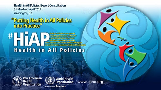 On 31 March and 1 April, 2015, PAHO will conduct an Expert Consultation on the implementation of the Regional Plan of Action on Health in All Policies (HiAP). This exercise will serve to define concrete recommendations as to how the Regional Plan of Action on HiAP can best be operationalized within the Region of the Americas over the course of the next five years, 2014-2019.