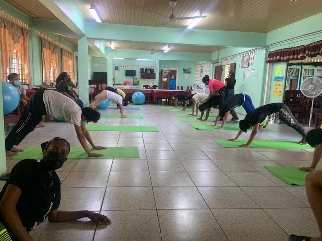 The dormitory housing Adolescents from the hinterland communities perusing studies in Georgetown also received a donation of yoga mats and exercise balls that can to used to help continuously improve their mental health.