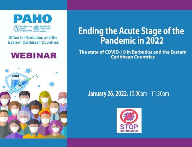 Bridgetown, Barbados, January 26, 2022 (PAHO/WHO) - The Pan American Health Organization (PAHO) Office for Barbados and the Eastern Caribbean Countries hosted a webinar on "Ending the Acute Stage of the Pandemic in 2022: The State of COVID-19 response in Barbados and the Eastern Caribbean Countries", on Wednesday January 26, 2022.