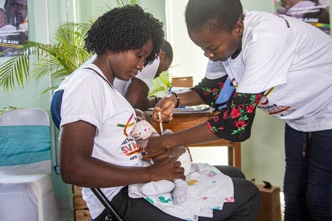Vaccination Week in the Americas (VWA) was launched this year by Haiti's Ministry of Health and Population (MSPP) with support from PAHO, in the city of Les Cayes, marking the beginning of a catch-up vaccination campaign in the South Department. This initiative aims to improve immunization coverage in the country, with a particular focus on under-immunized children and zero-dose children.