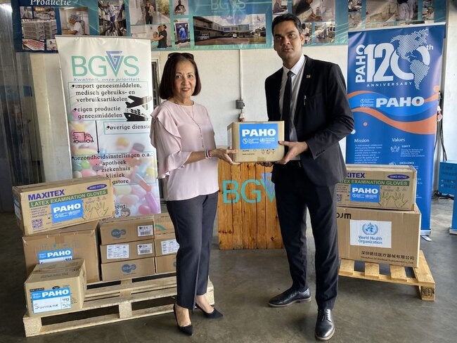 "We are immensely grateful to PAHO/WHO for yet another valuable donation of medical equipment and supplies. These supplies are aimed for the use of COVID-19, which is still present among us. However, as of last year the treatment of COVID-19 has been integrated within our regular health care treatment, thus we can use these supplies to treat patients and protect our health care workers against other infectious diseases", said Minister of Health Dr. Amar Ramadhin.