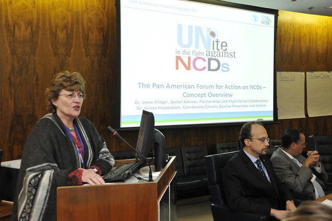 The Pan American Forum is a coalition of public, private and civil society partners created recently by PAHO with support from the World Economic Forum, the Public Health Agency of Canada and the Spanish Agency for International Development Cooperation. It was announced formally by PAHO Director Mirta Roses during the United Nations High-Level Summit on Noncommunicable Diseases (UNHLM) in New York last September. The forum's objective is to promote awareness and prevention of heart disease, stroke, cancer, diabetes and other NCDs, which are the leading causes of death throughout the Western Hemisphere.
