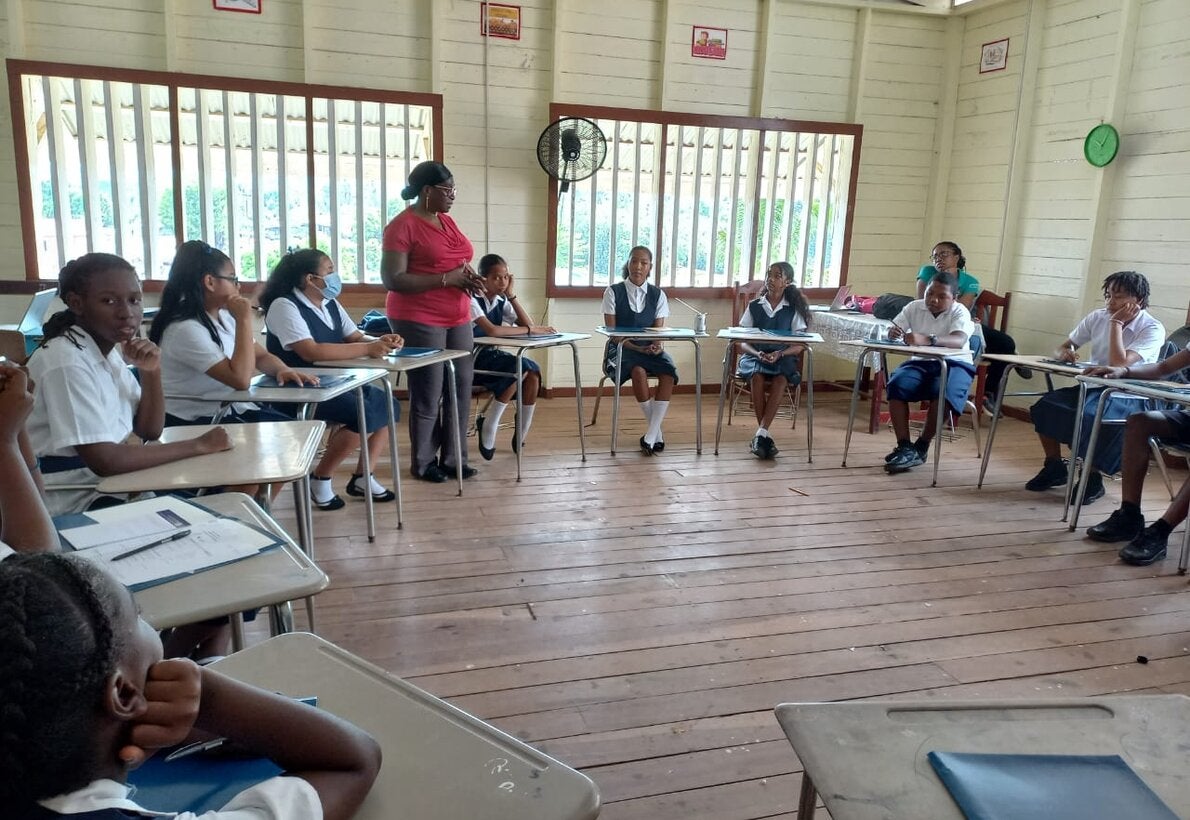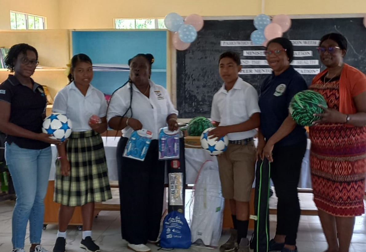 GEORGETOWN, GUYANA- 3 OCTOBER 2023- The Pan American Health Organization/World Health Organization in collaboration with the Ministries of Health and Education, with support from Improved Health of Women and Adolescent Girls in Situations of Vulnerability project funded by Canada, conducted two (2) Peer Education Trainings and created school health clubs with over 50 students from Baramita and Mahdia Secondary Schools.